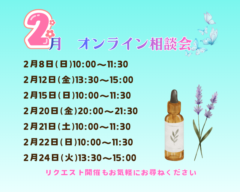 アロマ相談会の予約は、あらかじめ決まった日程よりお選び、予約していただいています。リクエスト開催もご相談に応じることができる時があります。